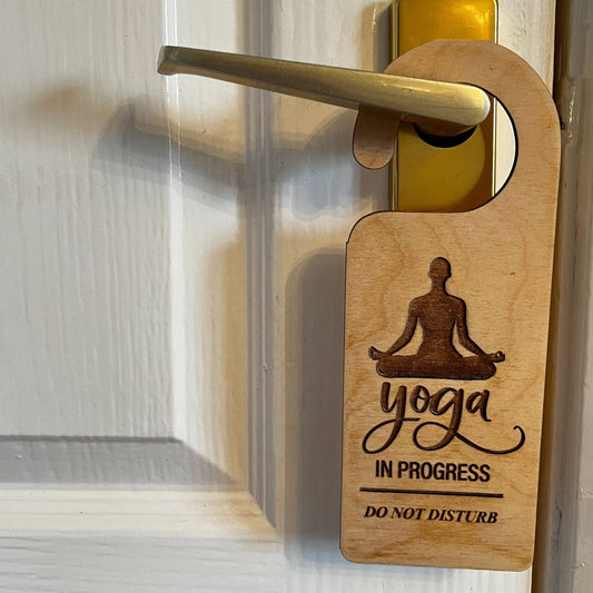 Yoga in Progress Do Not Disturb Engraved Wooden Door Hanger Gift Namaste Zen Exercise Mindfulness Christmas Gift Birthday Present