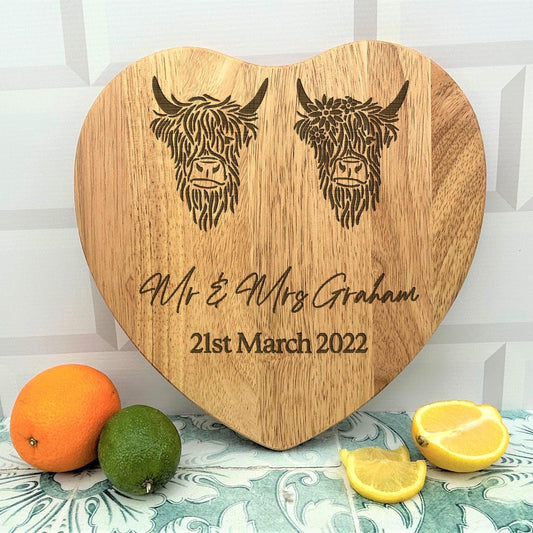 Highland Cows Personalised Engraved Couple Chopping Board - Wedding Gift