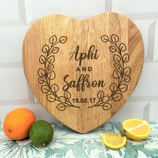Laurel Wreath Names - Personalised Engraved Chopping Board - Wedding Gift