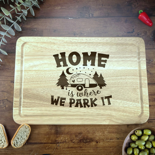 Home Is Where We Park It Caravan Engraved Wooden Chopping Board Motorhome Campervan Home House Cooking Gift Kitchen Decor Housewarming