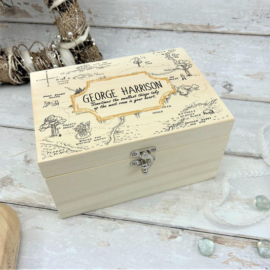 Pooh Bear Wood Map Christening New Baby Personalised Wooden Memory Box Gift
