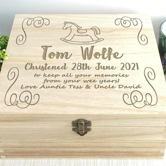 Rocking Horse Wooden Keepsake Memory Box Christening / New Baby Personalised Gift