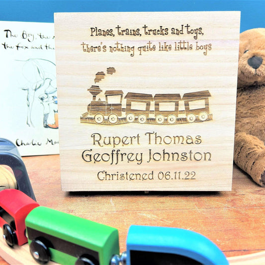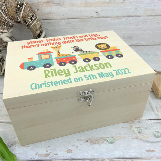 Train Boys Christening New Baby Wooden Memory Box Personalised Gift