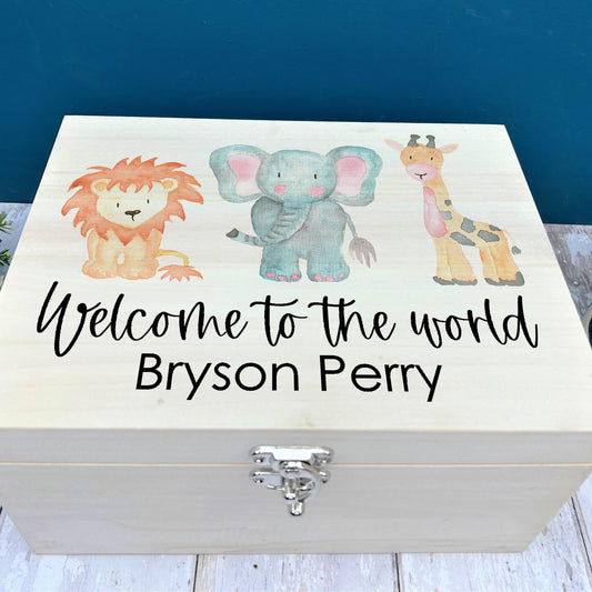 Welcome To The World Safari Watercolour Animals - Personalised Christening Gift