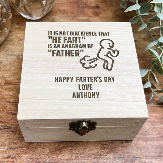 Funny Father’s (Farter’s) Day Gift – Engraved Personalised Wooden Box – Father’s Day – Birthday Gift