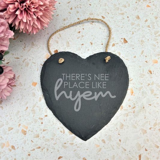 There's Nee Place Like Hyem - Newcastle Geordie Dialect - Personalised Slate Heart Plaque