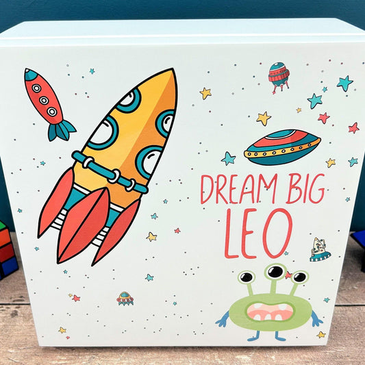 Spaceship Themed Children's Box - Toy Storage / Memory - Wooden Personalised Gift