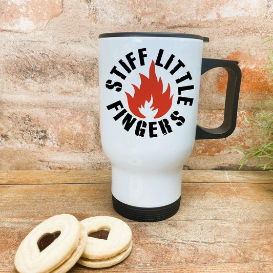 Stiff Little Fingers Logo - Northern Ireland Dialect - Personalised Travel Mug