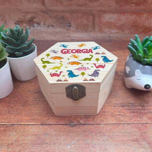 Dinosaur Themed Children's Printed Box - Toy Storage / Memory - Wooden Personalised Gift