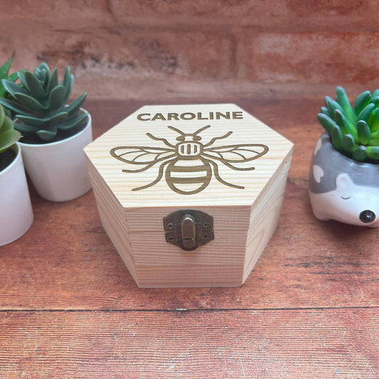 Manchester Bee Engraved Box - Storage / Memory - Wooden Personalised Gift