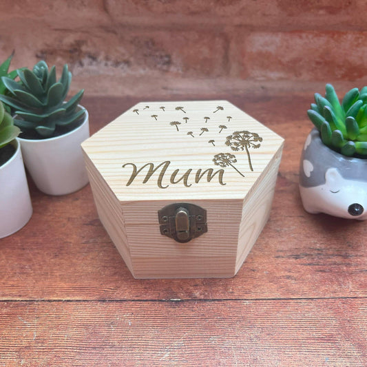 Dandelion Blowing Engraved Box - Storage / Memory - Wooden Personalised Gift