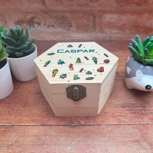 Spaceship Themed Children's Box - Toy Storage / Memory - Wooden Personalised Gift
