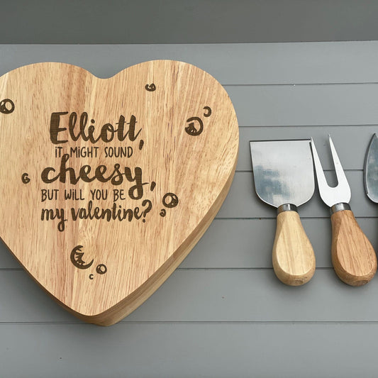 Sounds Cheesy Valentine's Day Heart Shape Cheese Board Set - Personalised Gift