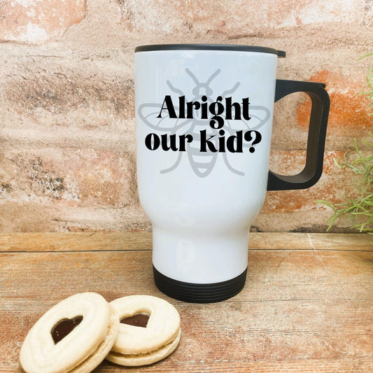 Alright Our Kid? Mancunian Quote - Personalised Travel Mug,