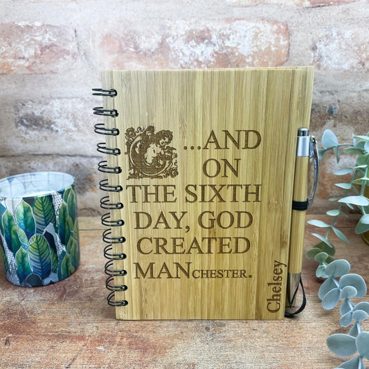 And On The Sixth Day God Created MANchester- Manc Dialect Engraved Notebook Journal Bamboo