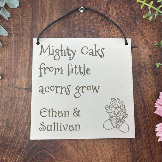 Wooden Engraved Plaque - Mighty Oaks from Acorns - Nursery Decor - Christening New Baby Personalised Gift