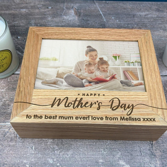 Happy Mother's Day - Mum Mummy - Personalised Memory Box - Photos 6x4 7x5 Holder - Solid Oak