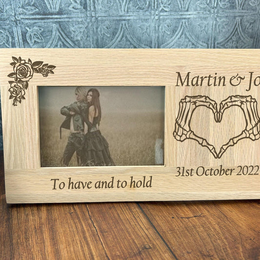 Bone Heart Hands Couple Oak Photo Frame - Wedding Anniversary Personalised Gift