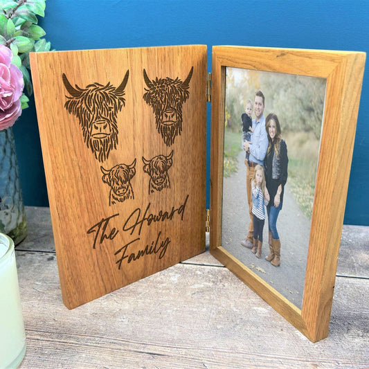 Highland Cow Family Design Personalised Oak Photo Frame - Family gift - Mother's Father's Day