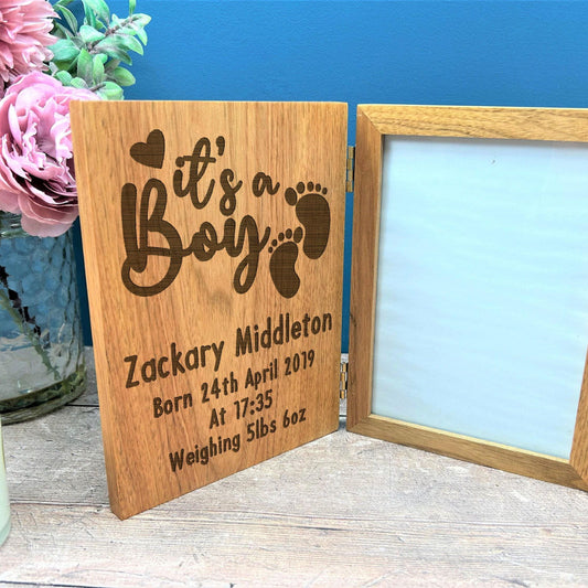 It's A Boy New Baby Personalised Oak Photo Frame Gift - New Baby Gift