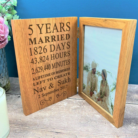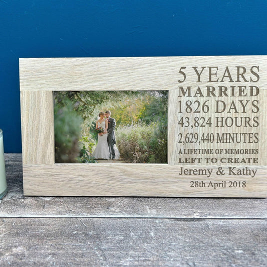 5th Anniversary Personalised Wooden Oak Photo Frame - 6x4 Picture - Wooden Fifth Wedding Anniversary Gift
