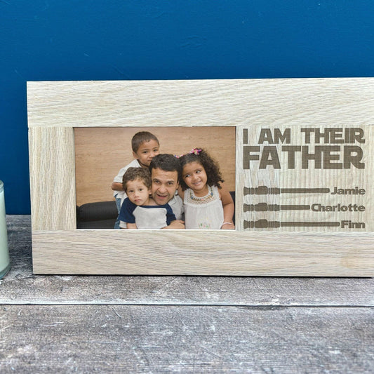 I Am Their Father - Star Wars Lightsabre - Father's Day Personalised Gift - Oak Photo Frame 6'x4'