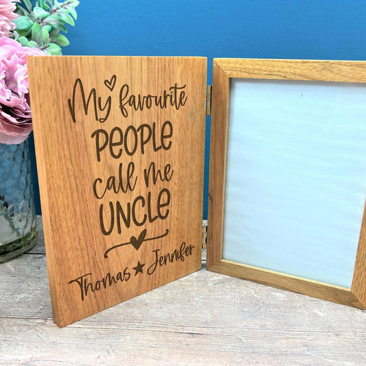 My Favourite People Call Me Uncle Personalised Oak Photo Frame - Brother Gift - Baby Announcement