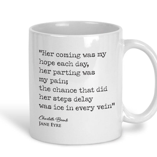 Jane Eyre Charlotte Bronte Book Quote "her coming was my hope each day" Classic Literature Mug