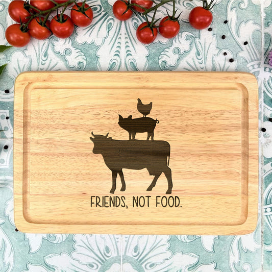 Friends Not Food Veganism Plant Based Wooden Engraved Chopping Board Home Decor Cooking Kitchen Vegan Funny Christmas Gift Birthday Present