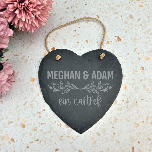 Ein Cartref Welsh Language Our Home - Personalised Slate Heart Plaque