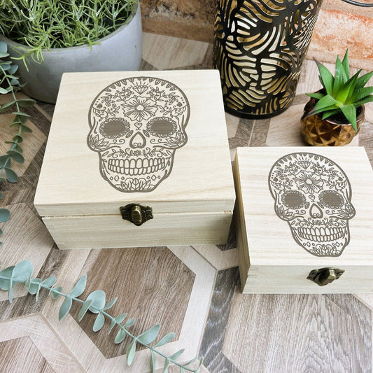 Sugar Skull Engraved Wooden Box Mexico Mexican Day Of The Dead All Souls Trinket Memory Box Storage Christmas Gift Birthday Present