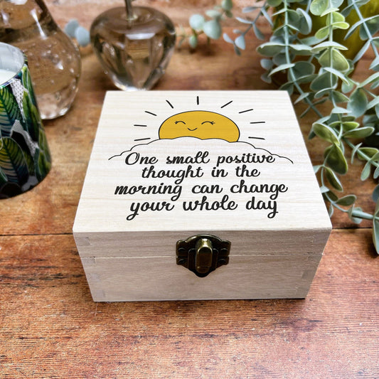 Sun One Small Positive Thought Self Care Colourful Wooden Box Gift Present Trinkets Desk Tidy Clutter Hair Bobbles Stationary