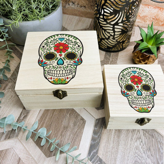 Sugar Skull Colourful Wooden Box Mexico Mexican Day Of The Dead All Souls Gift Trinket Memory Box Storage Christmas Gift Birthday Present
