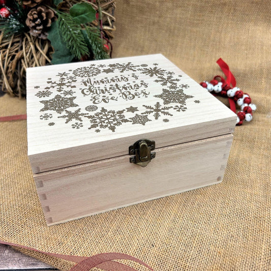 Snowflake Wreath Wooden Personalised Christmas Eve Box