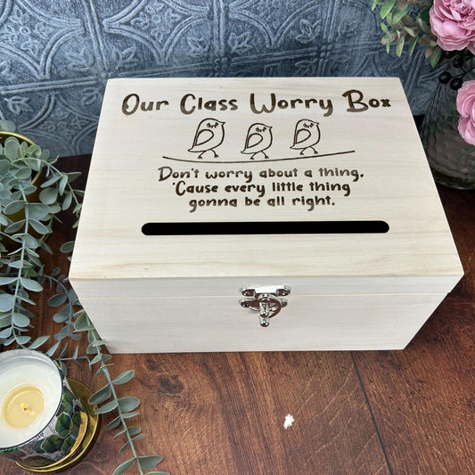 Three Little Birds Don't Worry Box Personalised Primary School Dropbox