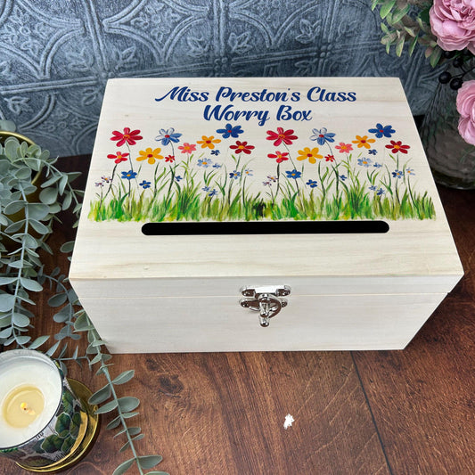 Colourful Flowers Worry Box Primary -Junior School Personalised Dropbox