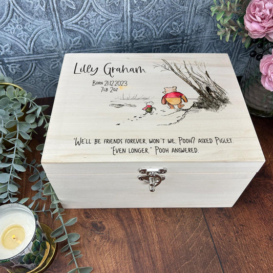 Friendship Pooh Bear & Piglet - Personalised Gift - Luxury Deep Wooden Box