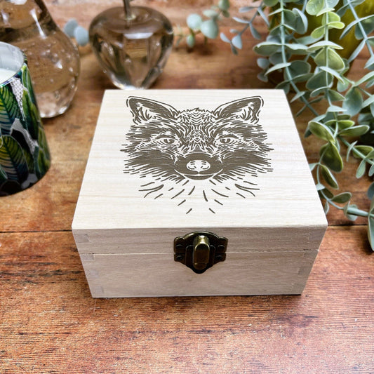 Fox Illustration Engraved Wooden Trinket Jewellery Box Christmas Gift Birthday Present Secret Santa Woodland Animal