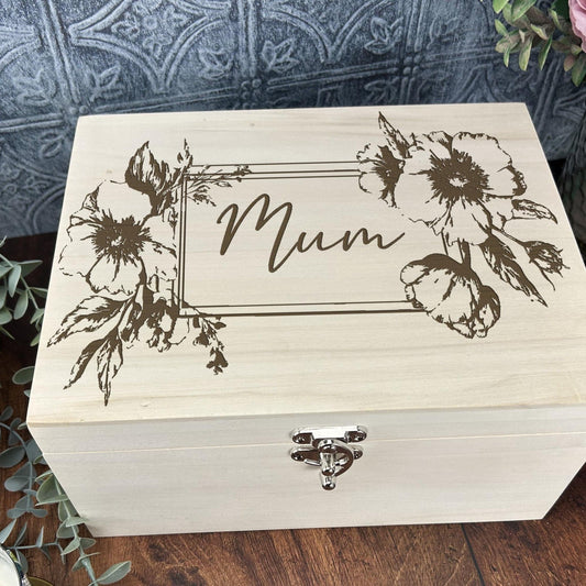 Floral Engraved Personalised Luxury Deep Wooden Memory Keepsake Box