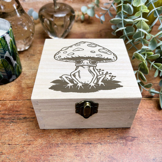 Frog Mushroom Illustration Cottage Core Engraved Wooden Box Christmas Gift Birthday Present Secret Santa