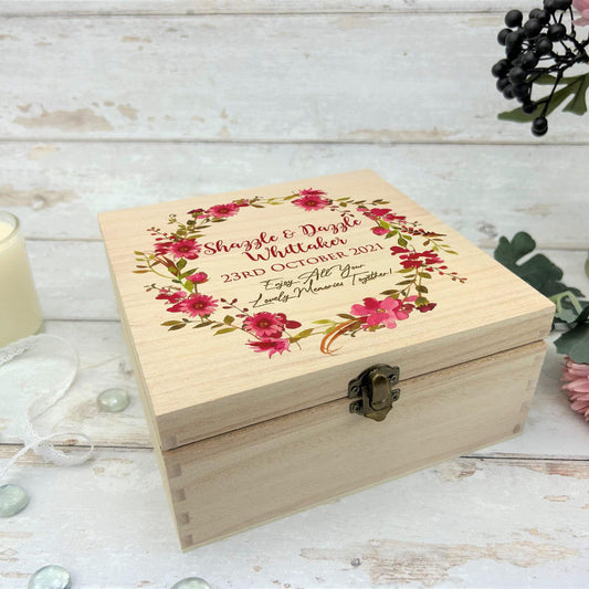 Floral Wreath Wedding Wooden Personalised Memory Box - Wedding Gift