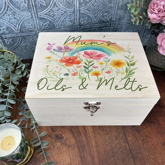 Flowers And Rainbow Wax Melt Storage Personalised Wooden Box