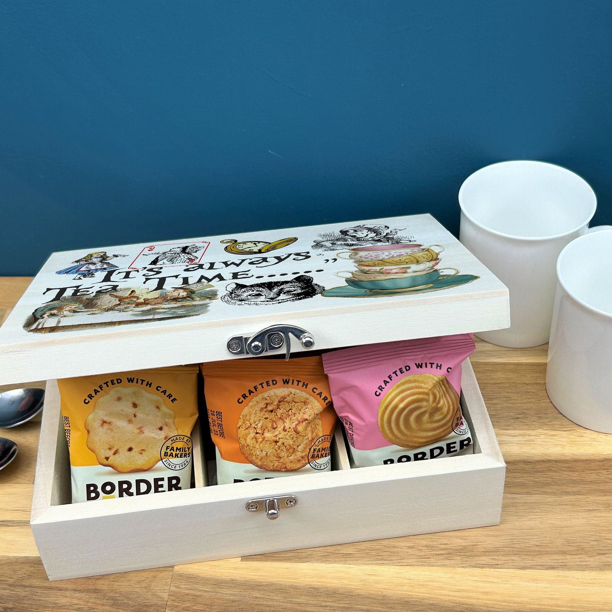 Alice in Wonderland "It's Always Tea Time" Tea Bag Compartment Wooden Box Colourful Illustration