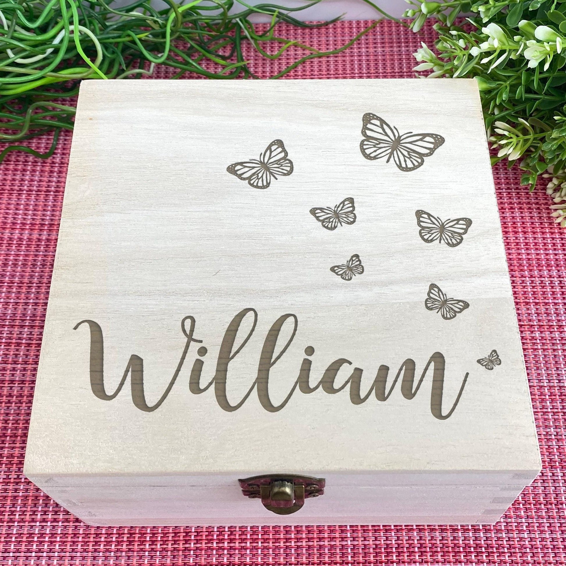 Butterfly Design Wooden Memory Keepsake Box Personalised Gift