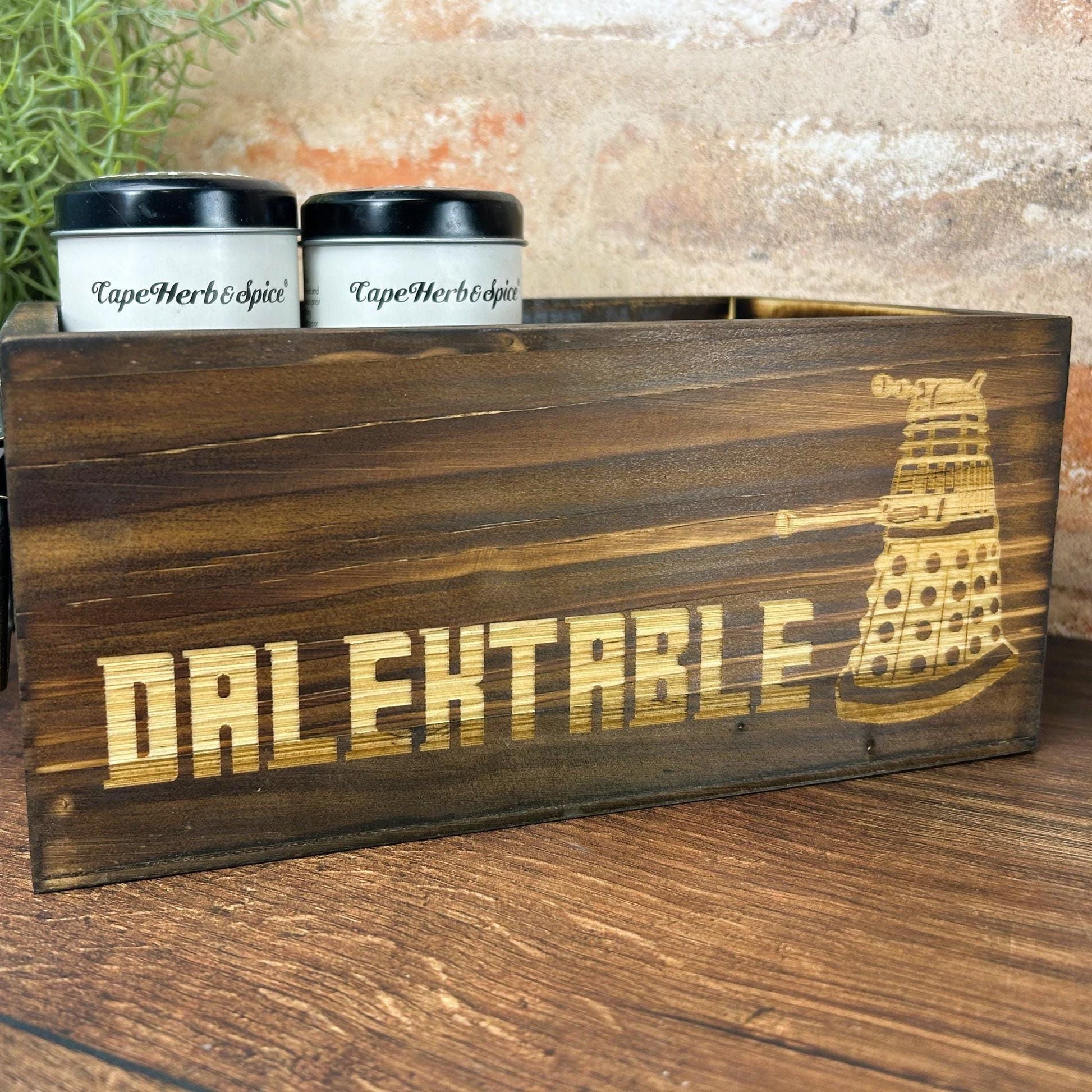 Dalektable Dr Who Doctor Dalek Engraved Kitchen Tidy / Caddy Storage Spices Vinegar Herbs Dining Table Decor Housewarming Cooking Baking