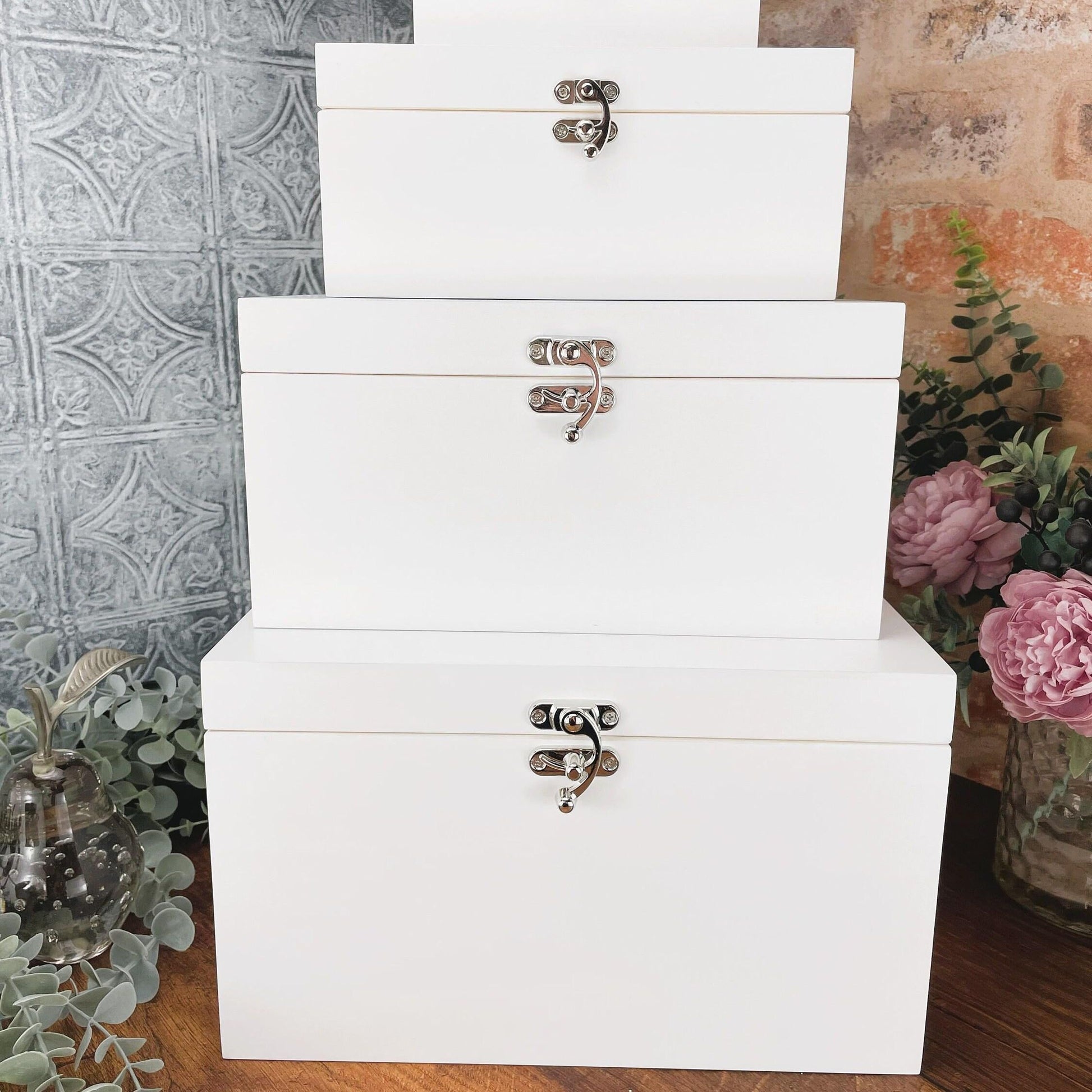 • Beautiful white lacquered wooden boxes