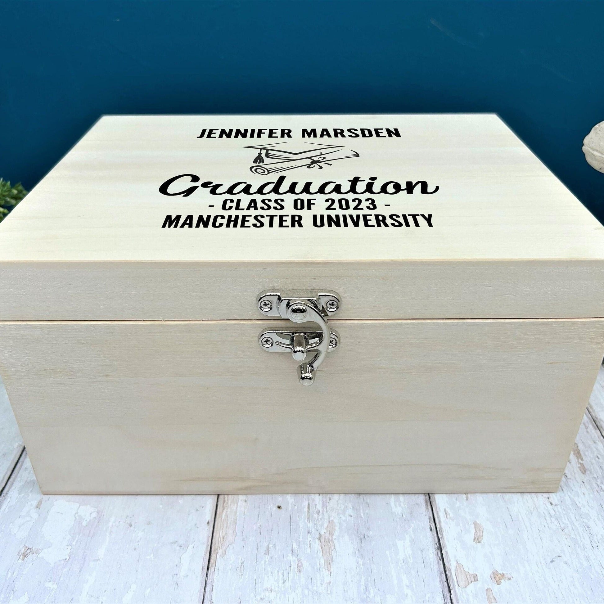 A classy memory box for graduation keepsakes and uni nostalgia.