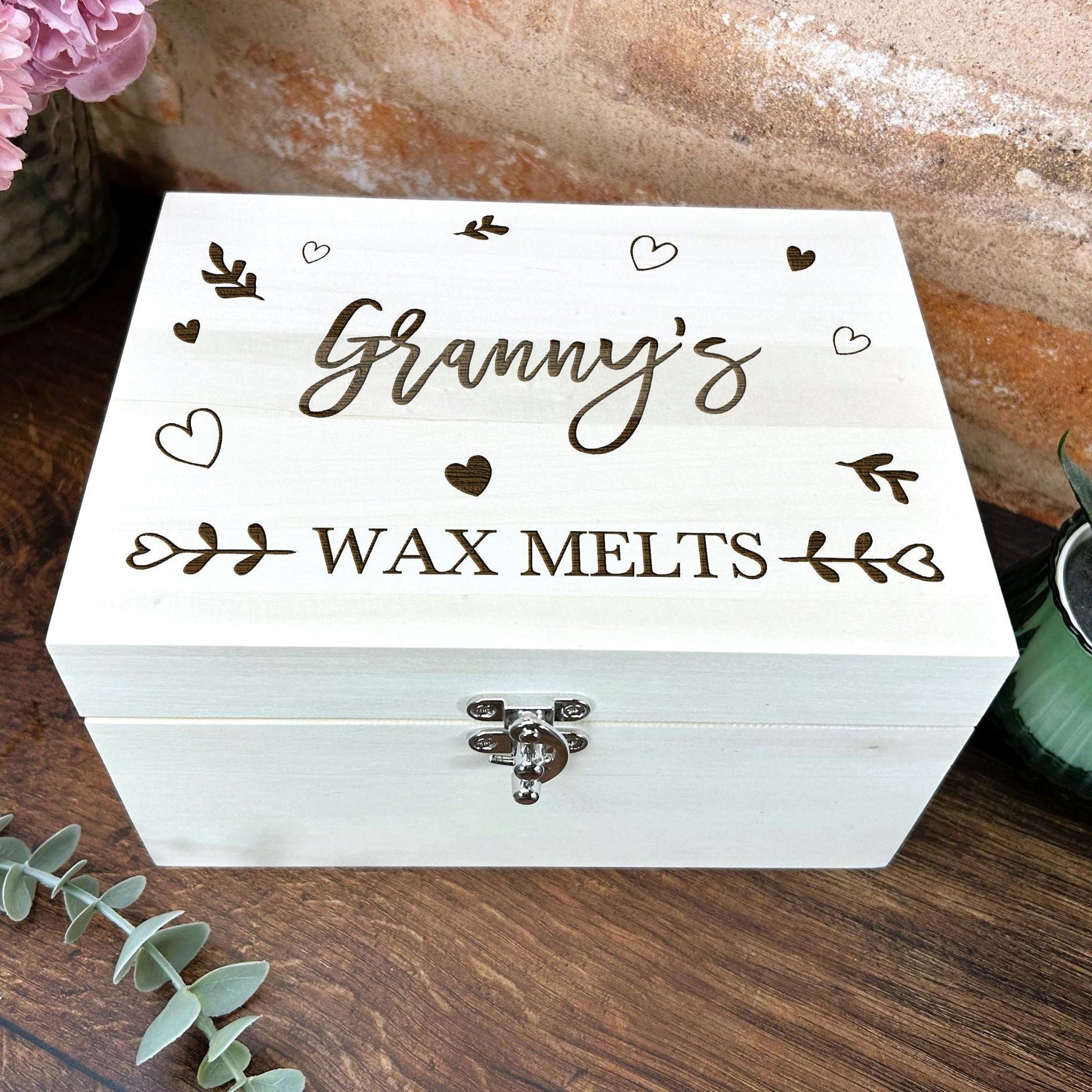 Hearts & Leaves Wax Melts Wooden Storage Box Personalised Gift