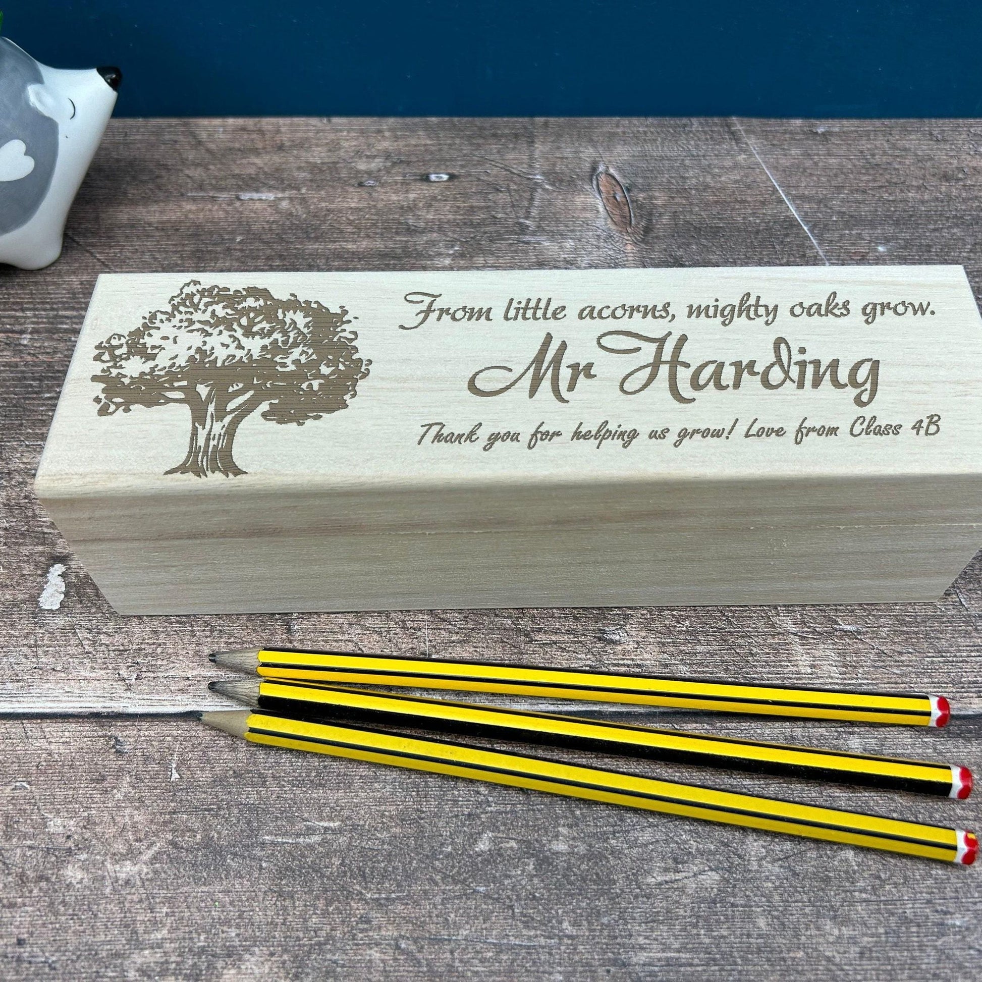 Mighty Oaks - Teacher Engraved Pencil Case Box - Personalised End of School Term Gift