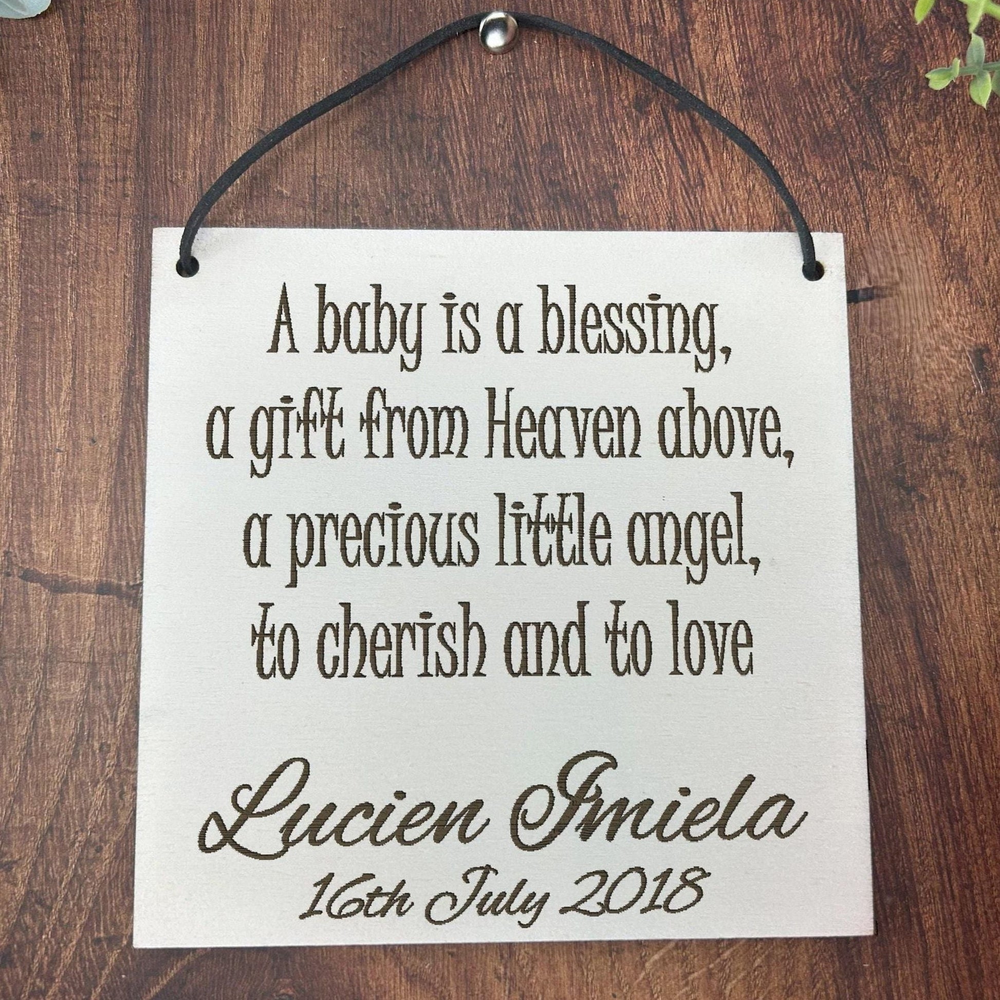 New Baby Personalised Gift - A Baby is a Blessing Ply Plaque - Christening - Hanging Plaque Nursery Decor